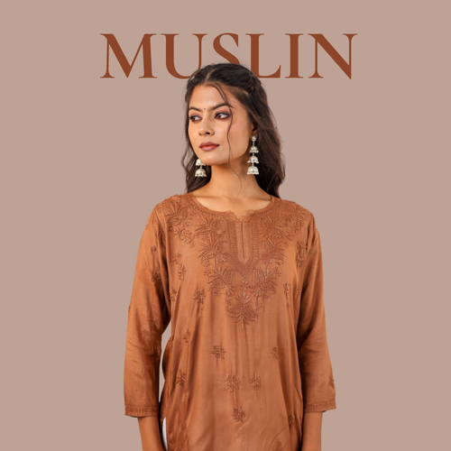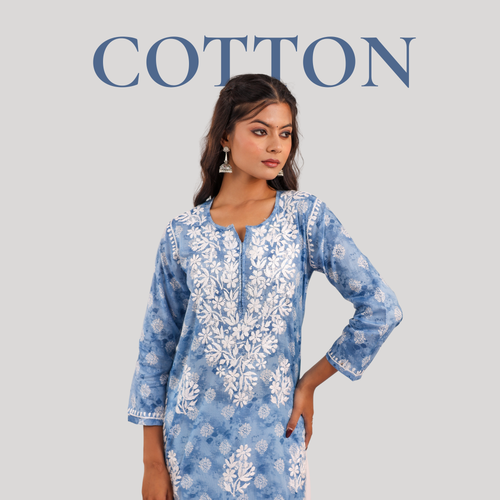 Tara Chanderi Cotton Angrakha Kurti- Cream