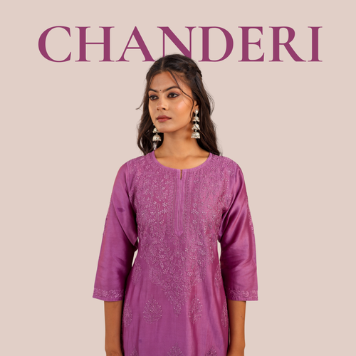 Tara Chanderi Cotton Angrakha Kurti- Purple
