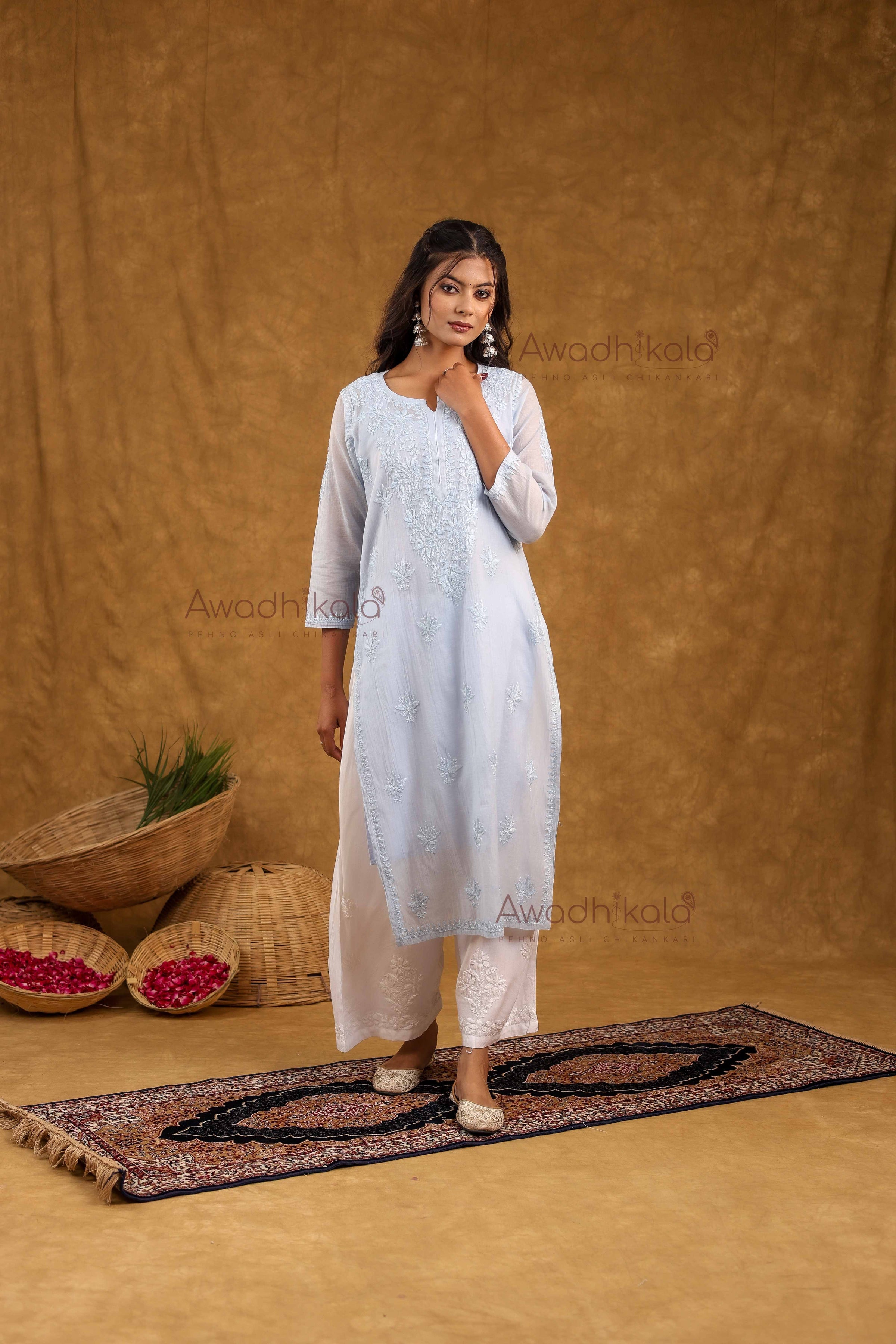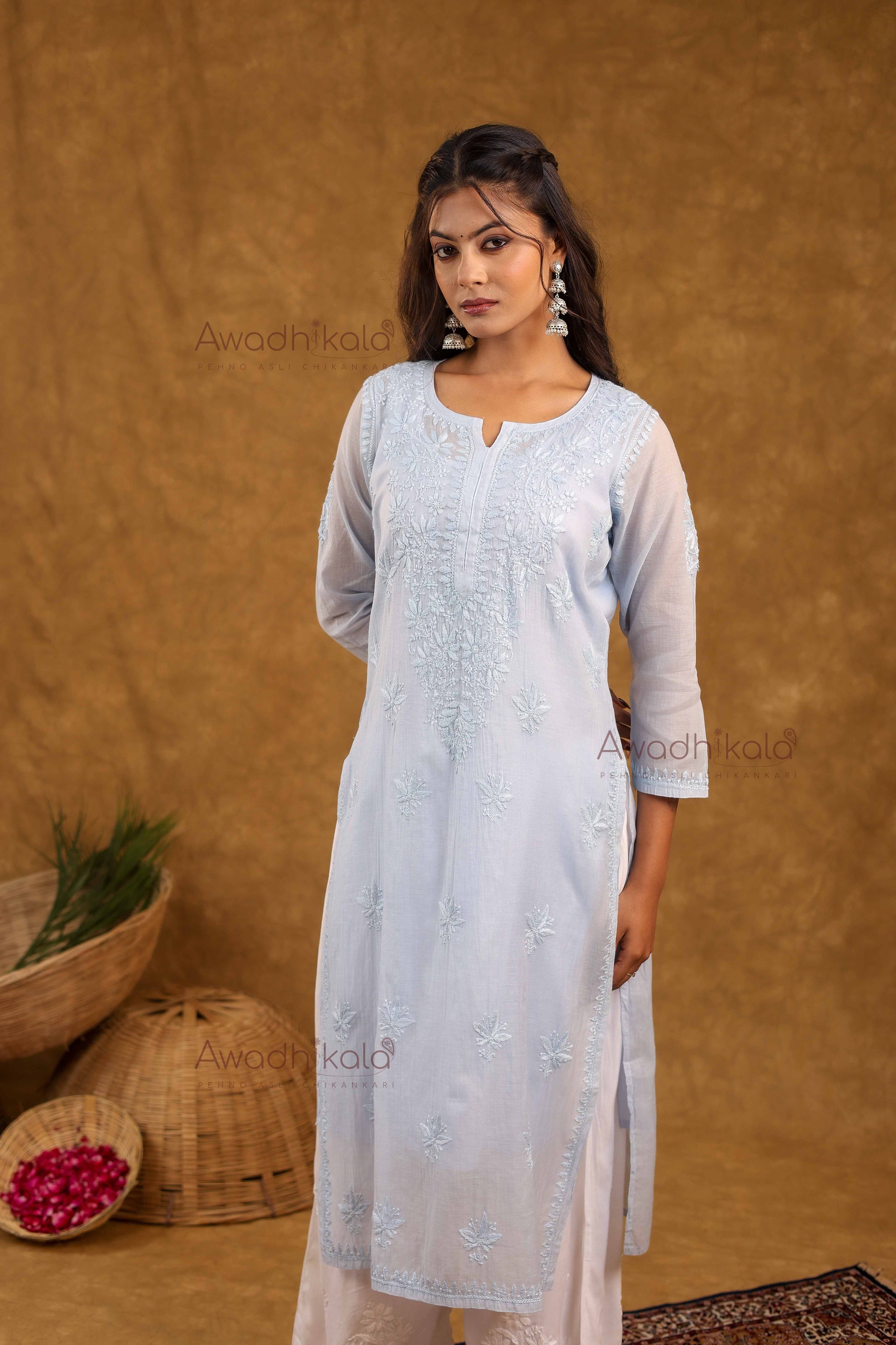 Introducing Trisha — a calming blue kurti designed to bring effortless elegance to your daily style. Made with soft Mulchanderi cotton and finished with fine Ghas Patti hand embroidery, it strikes the perfect balance between tradition and ease. Whether you’re heading to the office or catching up with friends, this breathable staple is ready for sunny summer days and everything in between.
